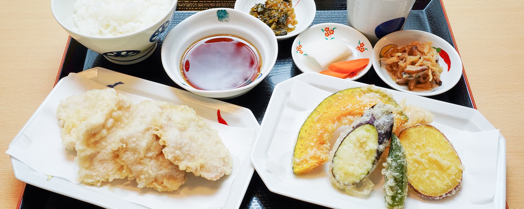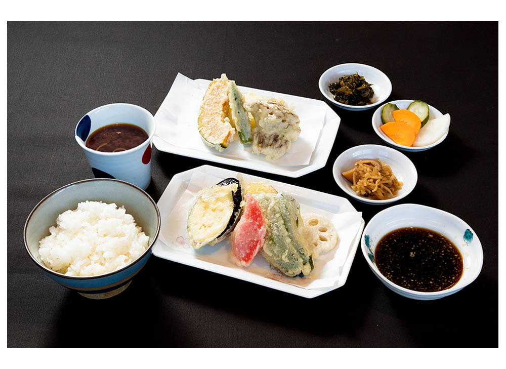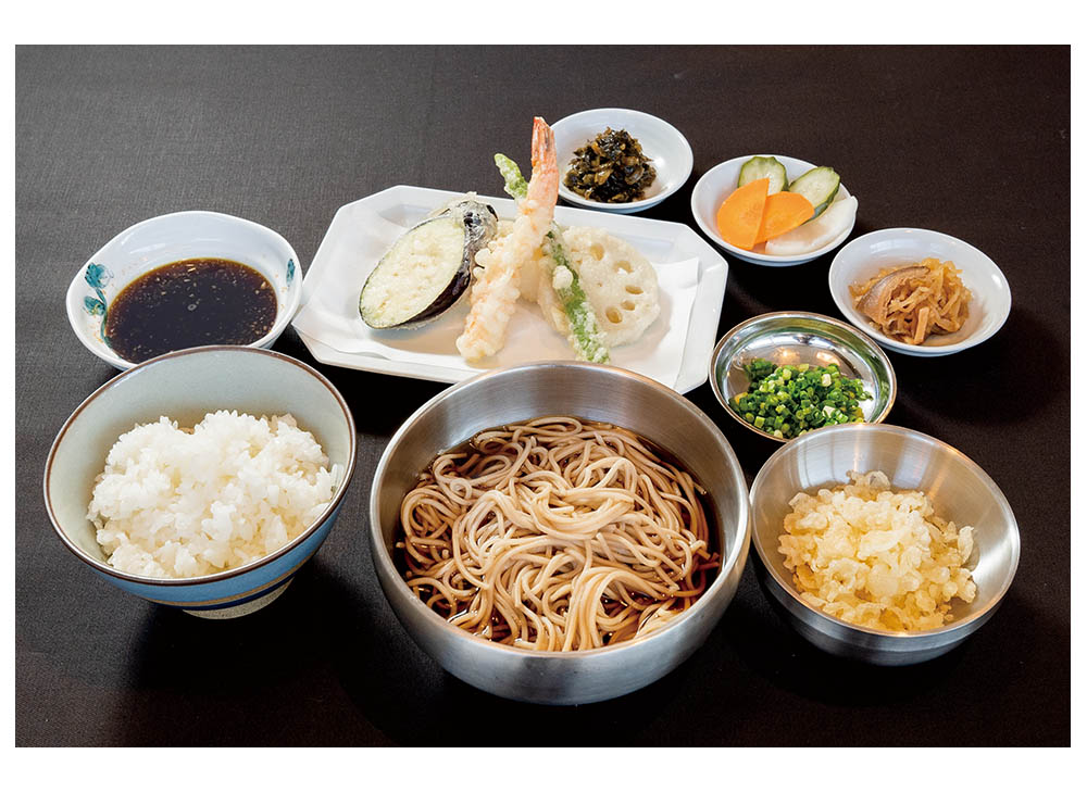 おろし蕎麦、海老×1、鶏または白身魚×1、野菜×3